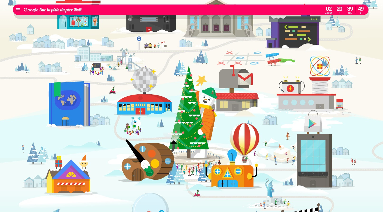 Google propose à ses utilisateurs de découvrir le village du Père Noël et de le suivre dans ses aventures jusqu'à la distribution des cadeaux.
