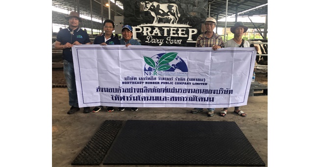 ตัวแทนที่ปรึกษาส่วนการแปรรูปผลิตภัณฑ์ บริษัท นอร์ทอีส รับเบอร์ จำกัด (มหาชน) หรือ NER ผู้ดำเนินธุรกิจผลิตและจำหน่ายยางแผ่นรมควัน ยางแท่ง และยางผสม เพื่อจำหน่ายไปยังผู้ผลิตในกลุ่มผู้ค้าคนกลาง ทั้งในและต่างประเทศ นำส่งตัวอย่างผลิตภัณฑ์แผ่นรองพื้นในคอกของปศุสัตว์ให้แก่ สหกรณ์โคนมไทยมิลค์ จำกัด จังหวัดสระบุรี และ ประทีปฟาร์มโคนม จังหวัดนครราชสีมา เพื่อทดลองใช้ ก่อนนำมาปรับขนาดและสภาพการใช้งานจริง