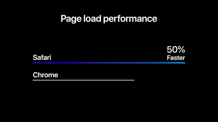 macのWebブラウザである、Safariの大きな革新も発表されています。まず、Javascriptの処理速度が上がり、Chromeの50%上を行くページ表示速度を実現。