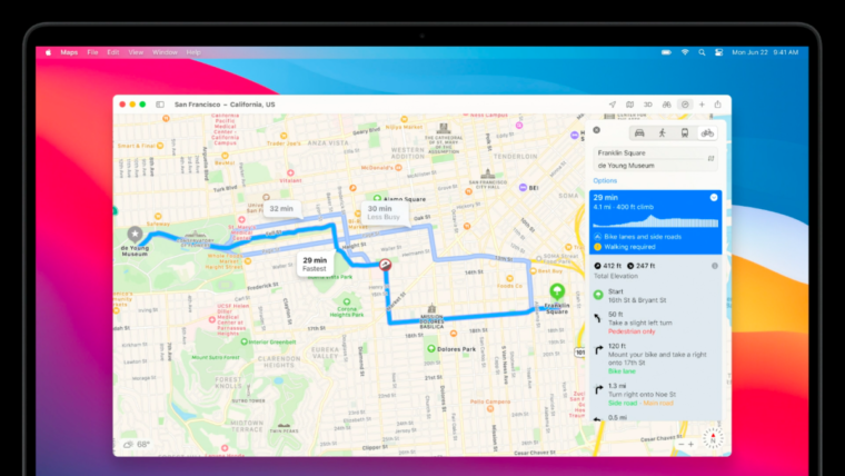 iOS 14で進化したマップアプリは、macOS版でもアップデートが加えられています。iOS 14で搭載される新機能に対応するうえ、お気に入りに登録したスポットの場所をワンクリックで表示できます。また、他ユーザーの目的地到着時間をチェックできる機能が追加され、これまでにない利便性を獲得しました。