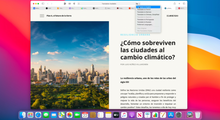 さらに、翻訳機能の搭載も見逃せません。主言語でないページにアクセスした場合、翻訳機能が動作し、主言語への翻訳を行ってくれます。