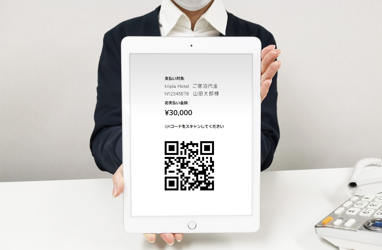 宿泊者は自身のスマートフォンなどでQRコードを読み取り、クレジットカード情報を入力するだけで、支払いが完了する。